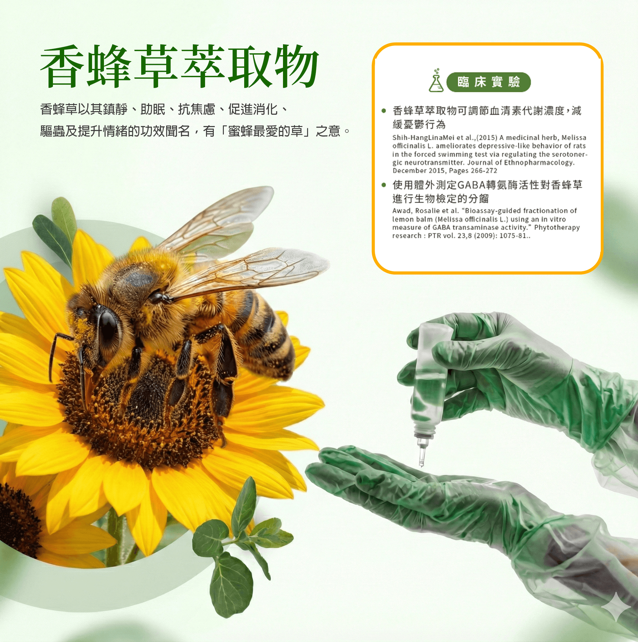 - 法國香蜂草萃取 (200mg):100%純天然萃取,鎮靜助眠,情緒穩定 。